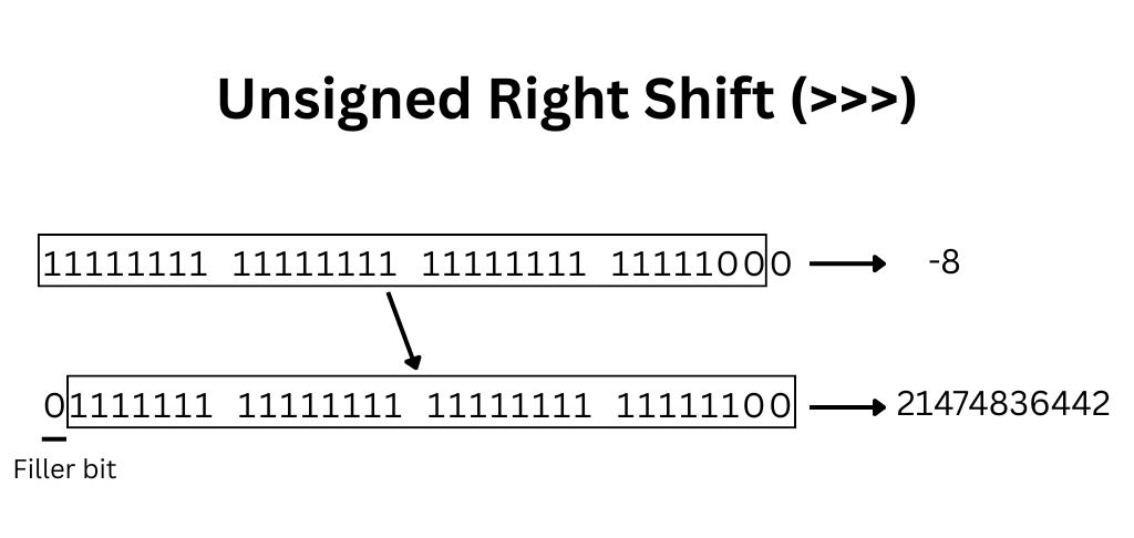 The unsigned right shift operator shifts bits to the right and fills with 0, ignoring the sign. It is mostly used to deal with negative numbers.